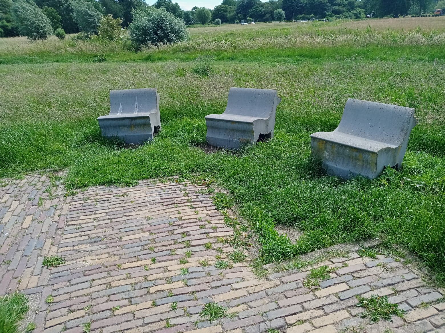 Je moet eerst een brug over om bij de de ruïne te komen. Waarschijnlijk is dit één van de grachten geweest. Het pad wat er ligt zijn de contouren van het kasteel. Waar een toren heeft gestaan hebben ze een halve cirkel met stenen gemaakt. Je kunt duidelijk zien dat er een hoofdburcht en een voorburcht was. Aan de kuil in de grond zie je precies waar het kasteel gestaan heeft. Er staan een paar middeleeuwse stoeltjes waar je kunt gaan zitten. Ondanks dat het kasteel er niet meer is, wordt mijn aandacht wel getrokken. Je voelt een bepaalde spanning een energie die is blijven hangen. Het voelt niet zomaar als een grasveld, want dat is het eigenlijk wel. Door de contouren van het kasteel komt het kasteel tot leven, je kunt er daardoor een beeld bij creëren.