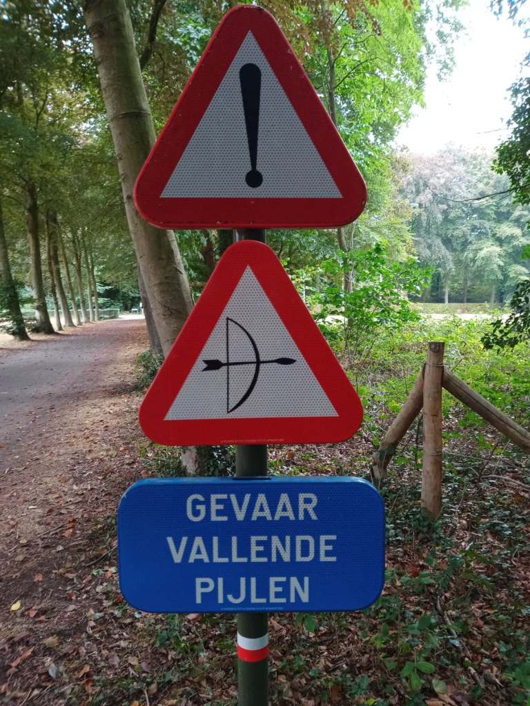 Binnen een paar minuten ben je bij het eerste kasteel, kasteel van Tillegem. Voor dat je het kasteel tegenkomt, kom je waarschuwingsbordjes tegen. Gevaar voor vallende peilen, erg leuk bedacht!
